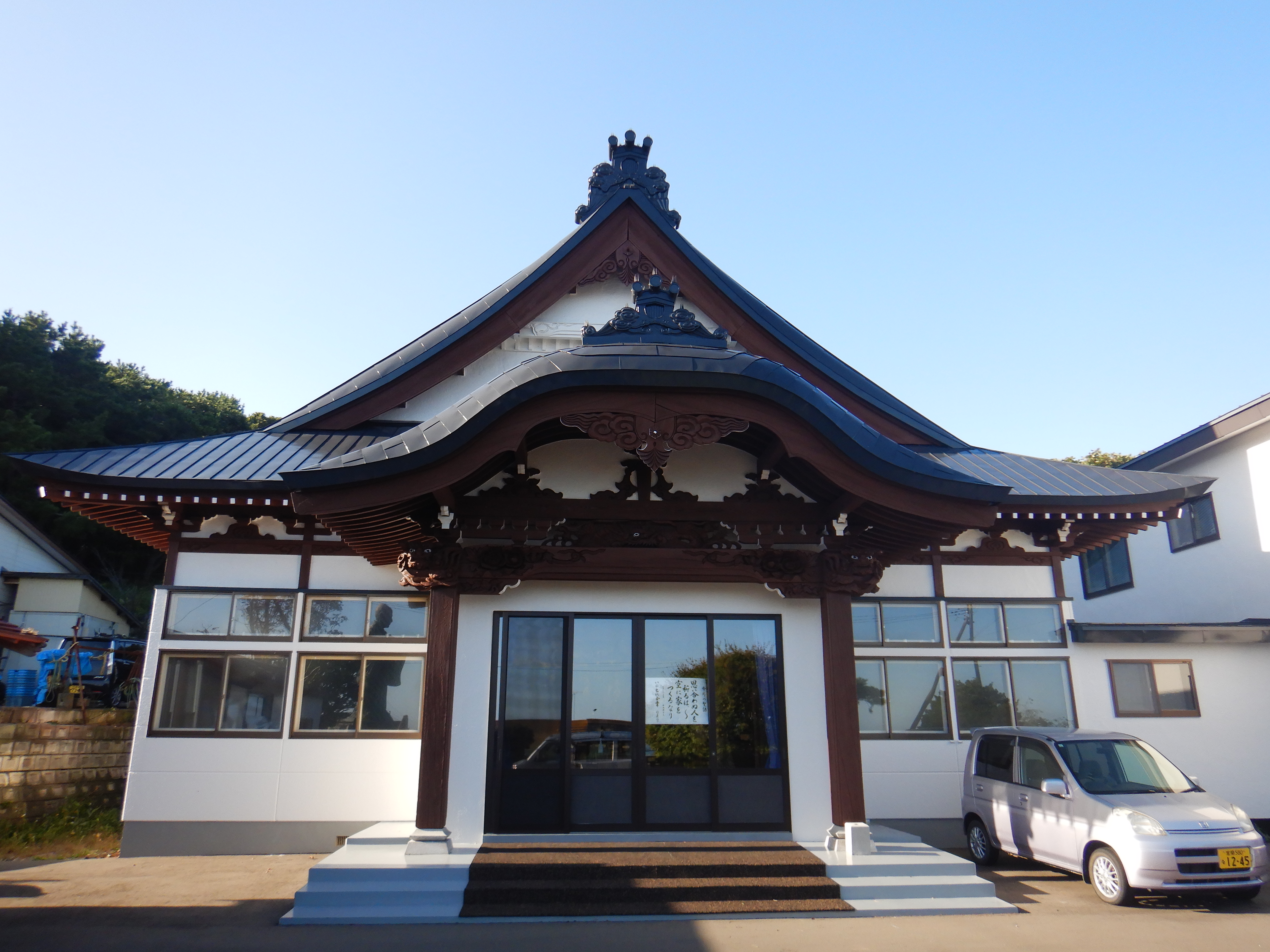様似町 法耀寺本堂塗装工事 (屋根/長尺トタン ・ 外壁/モルタル及びALC面)